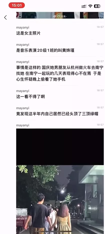 一年绿三次?广西行健文理学院渣女黄姝瑾半年不到送男友三顶绿帽