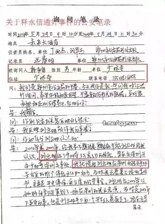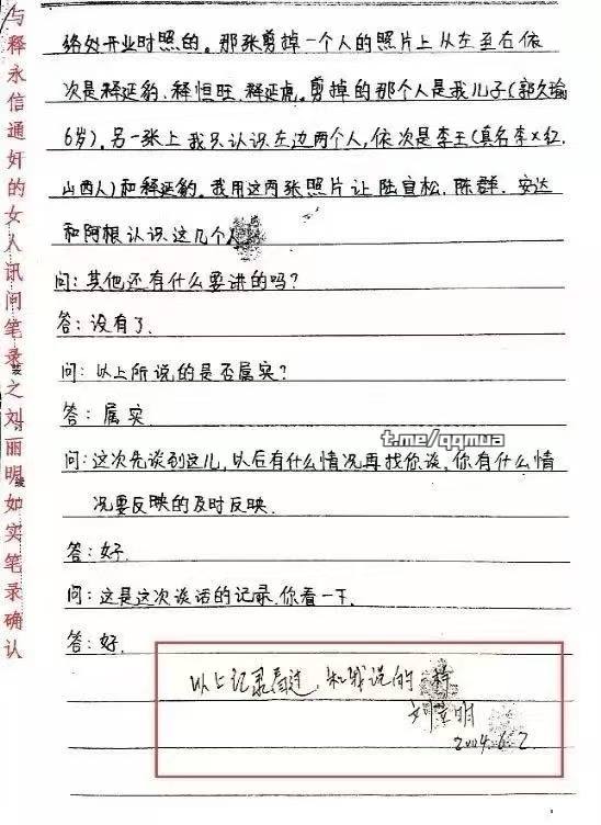 释永信对于自己犯下的罪行供认的笔录