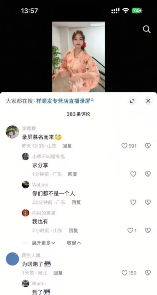 抖音带货的女主播们又一次创造了新的话题,而成人用品店【祥顺发专营店】更是别出心裁,安排女主播在直播过程中使用跳蛋。女主播因下身传来的快感而情不自禁,两条腿抖个不停,疯狂吸引流量。为了争夺观众的注意力,这些主播们真是无所不用其极。