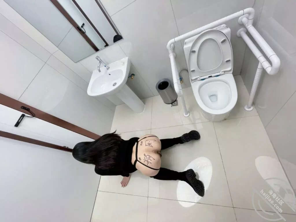 52.把母狗房东绑在公共厕所里训练,背后多少的努力终于见到效果了