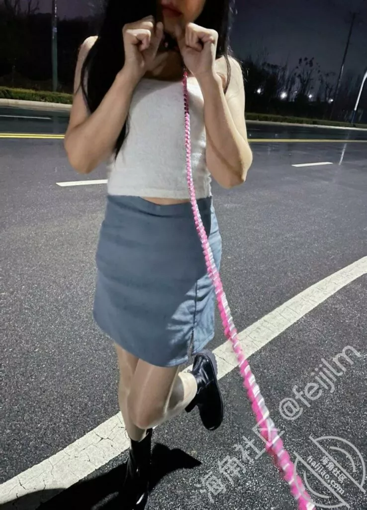 我说我要牵着她逛公园,开始还说好啊,以为是手牵着,结果是拿绳子牵着哈哈,当时就急了不愿意了,说万一有熟人认出来可怎么办啊,或者有熟人看到,好说歹说之下答应我满足一下,毕竟是大龄少女,没有小姑娘放得开,要是小姑娘估计得水流个不停