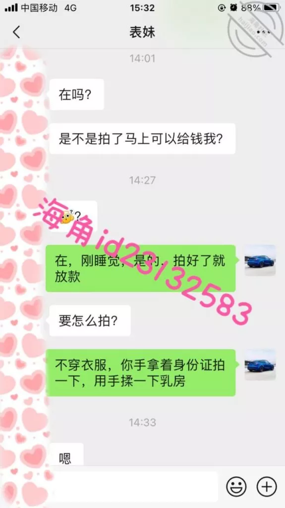 上周五用小号提醒表妹准时还款,果然她要还不上了,先吓一下她要发视频给家人,然后说9000陪我睡两晚,她就不理我了。