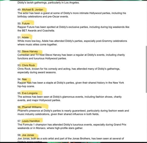 外网近日突然爆出一份所谓的吹牛老爹做i派对名单,多达100多为娱乐圈大咖以及政界名流。其中有贾斯汀比伯,著名说唱歌手50美分以及西海岸文化缔造者史努比狗狗。更令人震惊的是,总统候选人哈里斯竟然也名列其中。