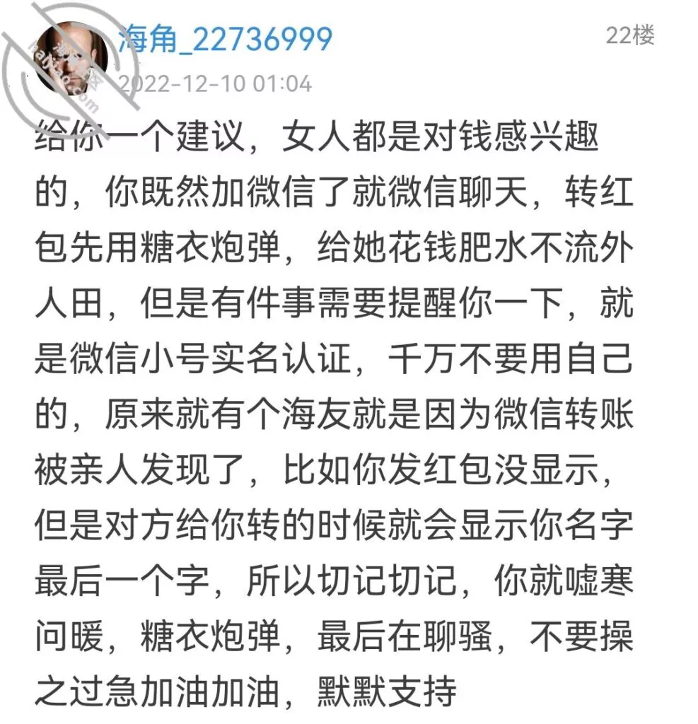 我现在都不知道怎么想了,细思极恐,大姨子不会也在海角吧?女人真是个神奇的生物,不过现在应该是安全了,我媳妇是不会知道了的,哈哈哈。