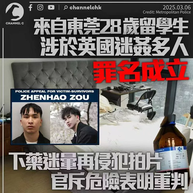 东莞的一名富二代留学生,博士生邹振豪,近日被指控对多名女性实施威胁。多达23位女性提供了证据,控诉这位嫌疑人利用药物使她们失去意识,从而任意Cao控她们。目前此人已经被英国警方逮捕进一步调查,在现场发现大量违禁药品以及偷拍设备。