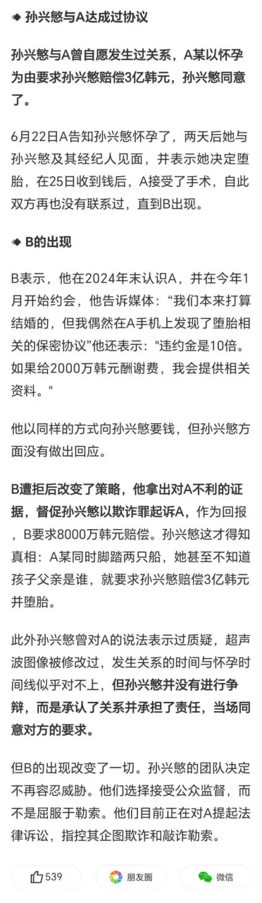 然而没多久之后,网络突然曝出更大内幕信息。首先孙兴慜确实与这位留学生美女发生过关系,且均出自于自愿。