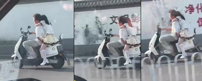 右手油门拧到死,左手向后一键开启运动模式,电动车能玩出来这种花样,一边在道路上飞驰,一边前后互相爱抚分秒必争,除了车速达到顶峰,俩人也是双双进入人生巅峰。