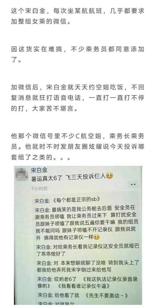 是谁说的做飞机出行的都是有素质的人的?川航一名空姐在一班航机上,因为一名乘客想要在厨房摆餐,多次搔扰下还被倒打一耙之下无奈离职,而这位把自己当做太上皇的白金卡乘客更是被爆料在线下对这名空姐白班搔扰。