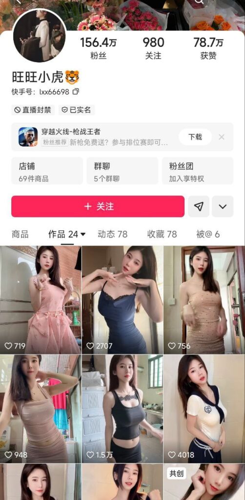 156万粉丝快手顶级高颜值擦边网红旺旺小虎私拍福利视频流出