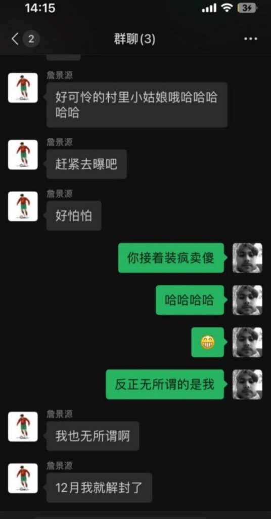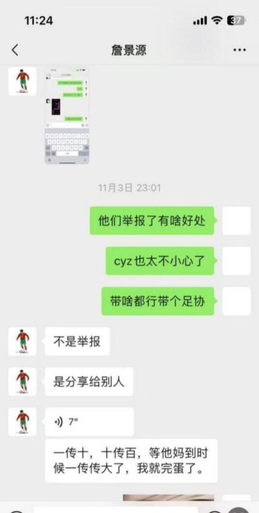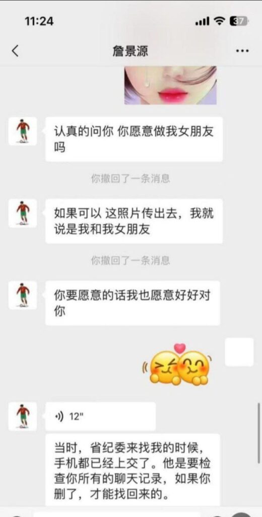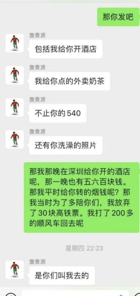 詹景源女友爆料的信息