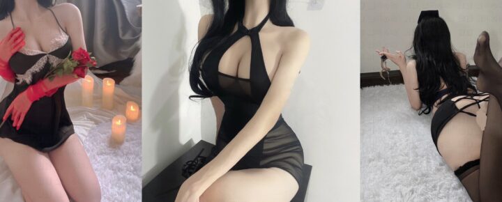 迷人博主写真短视频:黑色镂空裙装带猫耳饰品的魅力之约(共75张图片)
