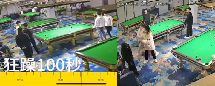 台球厅双子星精神小妹一言不合上演全武行对砍