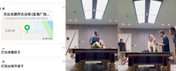 台球好啊台球得学江苏东台名爵台球厅巨茹助教带球撞人