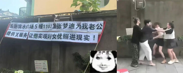 浙江嘉兴滨水广场抓歼名场面原配怒拉横幅小区嘲讽歼夫银妇